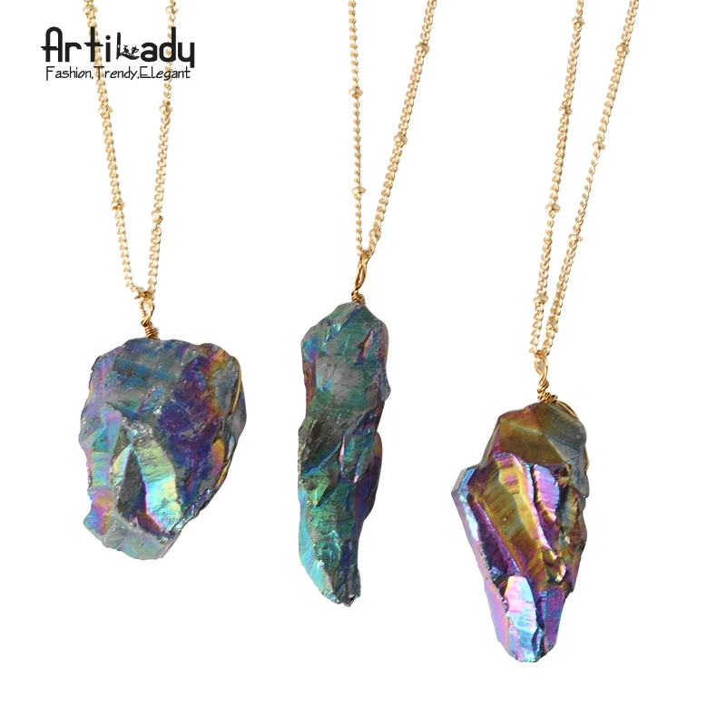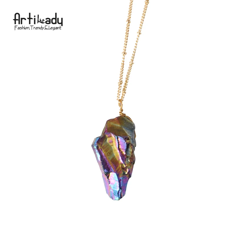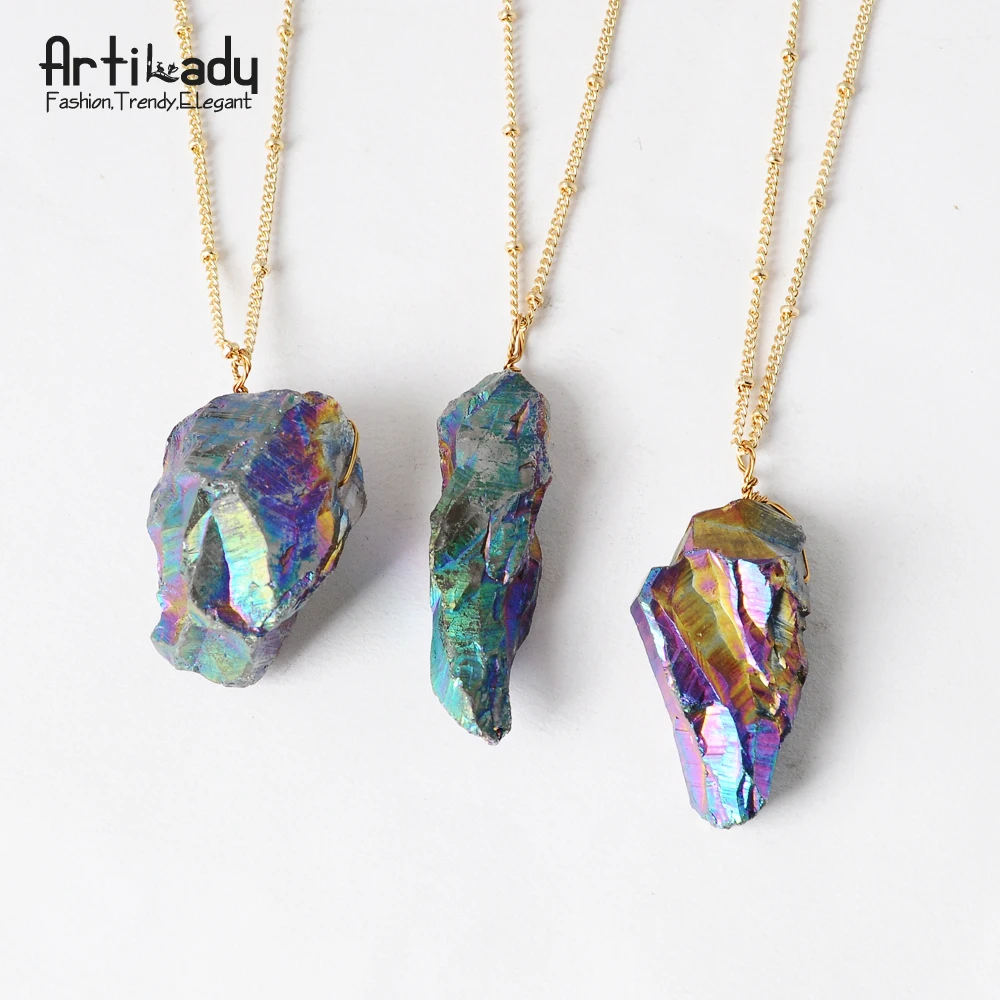 pendant necklace:raw quartz necklace