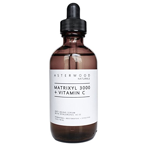 MATRIXYL 3000 + VITAMIN C SERUM WITH ORGANIC HYALURONIC ACID 4 OZ - LIGHTEN SUN SPOTS, ANTI AGING, ANTI WRINKLE - IMPROVE FACE SKIN TONE COLLAGEN - ASTERWOOD NATURALS - 4 OUNCE GLASS DROPPER BOTTLE