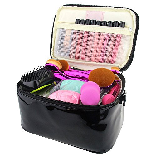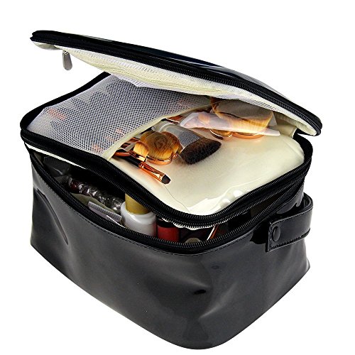 Travelmall 2 layer PU Leather Makeup Case Cosmetic Bag Large Makeup Brush Bag Multi Functional ...
