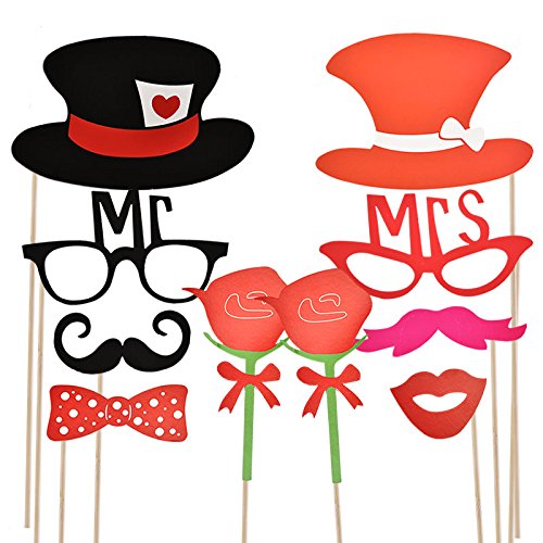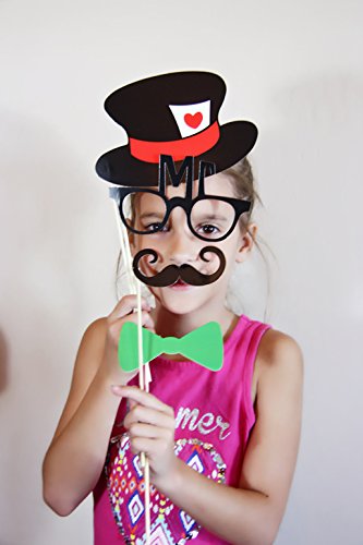 -. Feature : LARGE VARIETY: 66 Pieces Super Value Pack. Hundreds of Combinations of Hats, Funny Glasses, Colorful Ties, Mustaches and Lips. Bring Huge Fun to Birthday Parties, Wedding Parties, Engagement, Graduation Parties, Holiday Parties, Family Reunions etc. / EXTRA VALUE: Extra Pieces with Unique Designs such as Bunny Girl Hat, Roses, Mr&Mrs Glasses, Cat Woman Masks. / VIVID COLOR: All the Props are Printed on High Quality Thick Cardboard in Vibrant Colors Exactly as Shown in the Product Images! / EASY TO USE: Come with More then Enough Glue Dot Sheets and Smooth Rounded Wooden Sticks. Easy to be Put on for Immediate Use. / SAFE AND DURABLE: Made with Durable Cardstock. Comes in a Decent Transparent Hard Plastic Gift Box. Pieces can be Easily Restored for Repeated Use.