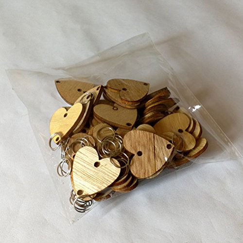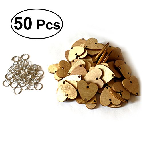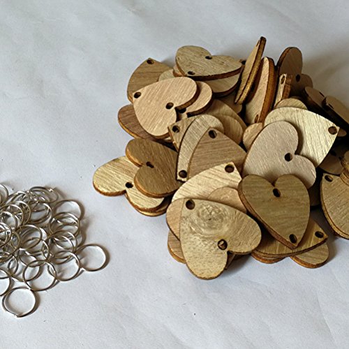 WINOMO 50pcs Heart Wooden Slices With 50 Iron Loops Set For Birthday Reminder Hanging Wooden Plaque Board DIY Calendar Accessories Home Decoration (Wood Grain)
