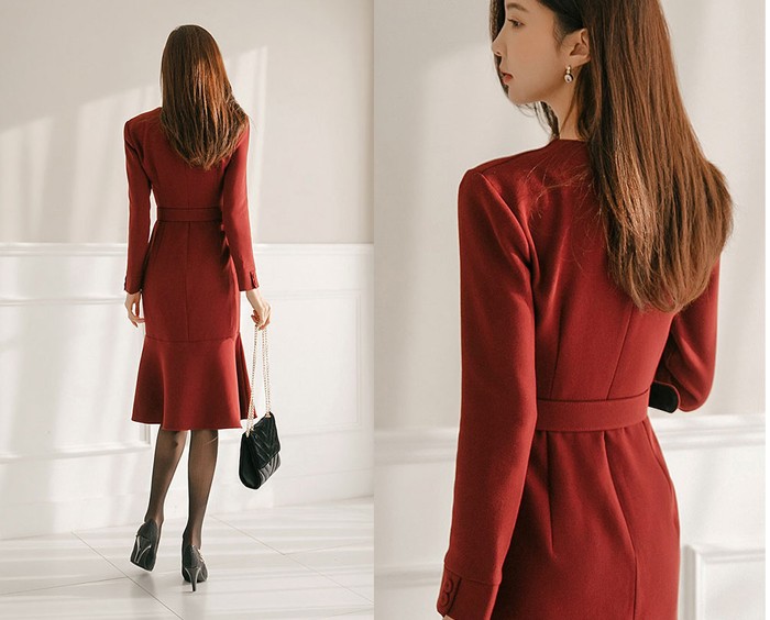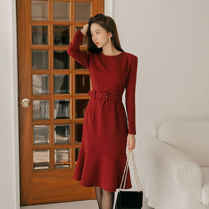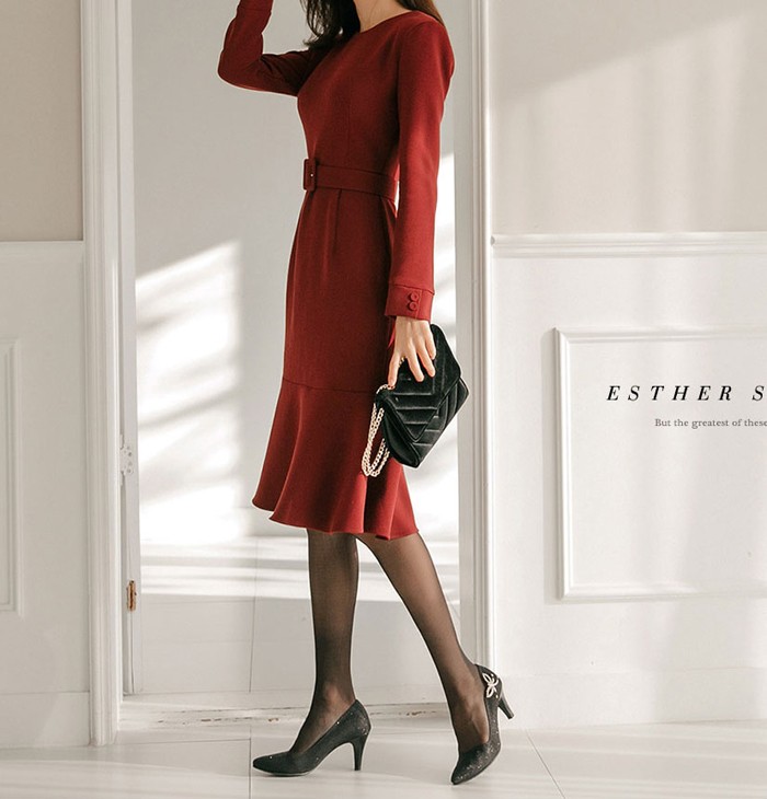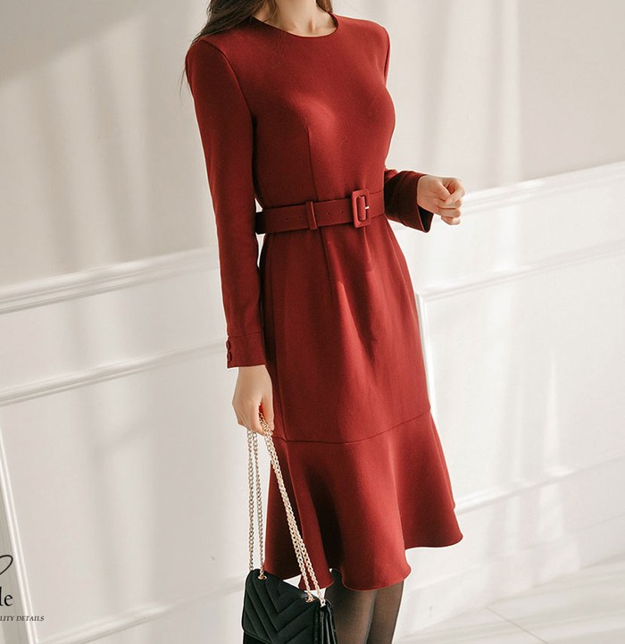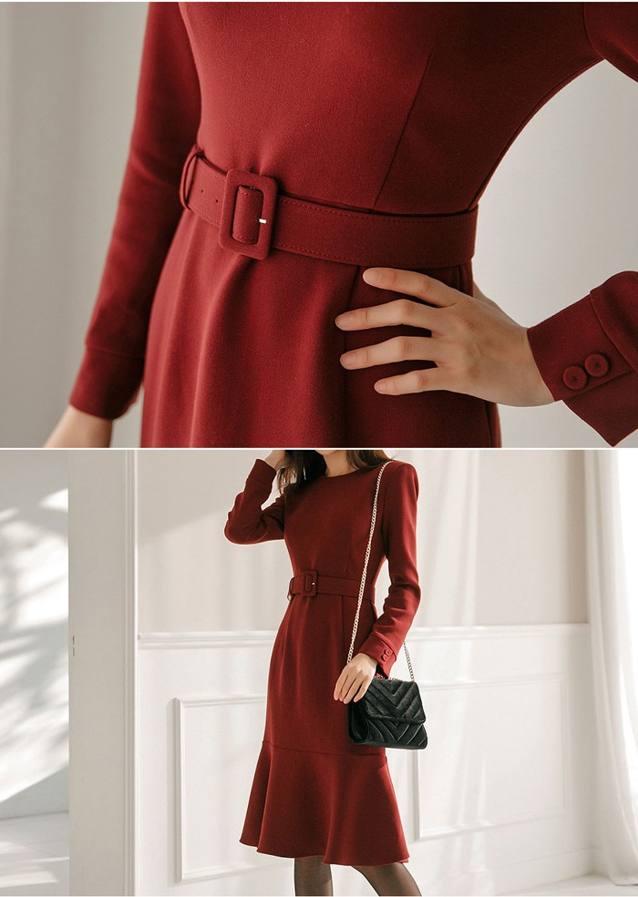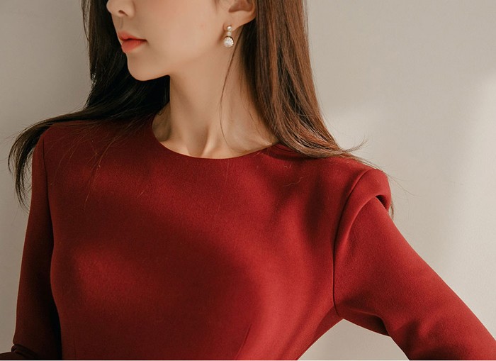 商品名:ワンピース 無地 長袖 きれいめ 通勤