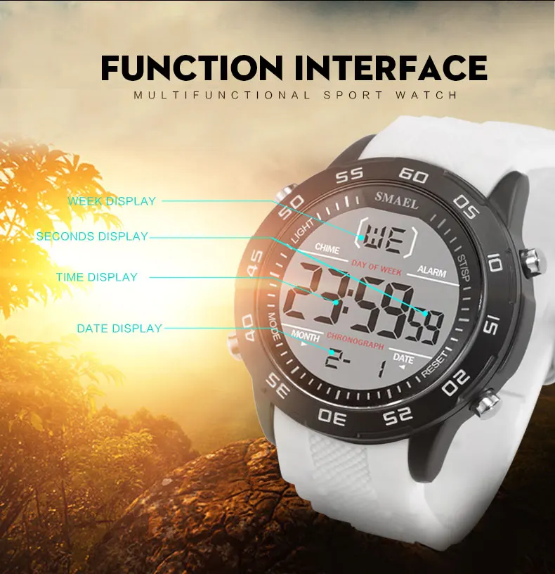 Feature:Shock Resistant,Stop Watch,LED display,Auto Date,Week Display,Water Resistant,Diver,Back Light,Chronograph,Alarm,Luminous,Repeater