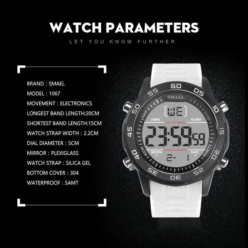 Watch Design Feature:Digital Wristwatches Alloy Case Silicone Band