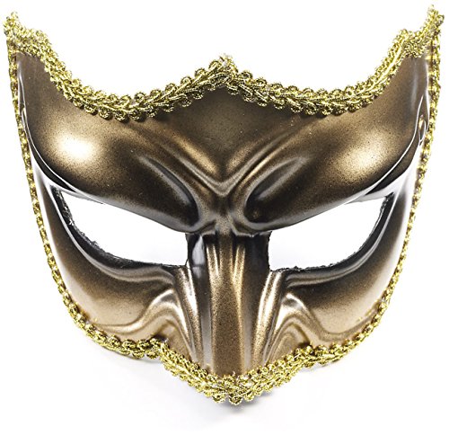 -. Title : Adult Gold Black Scowling Demon Devil Costume Half Mask