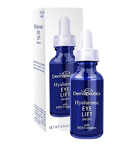 -. Binding : Misc. -. Brand : Dermapeutics -. Feature : Topical Hyaluronic Acid with MDI complex Lift Serum Firms, Lifts, and Smoothes. / Why pay $500 - $700 a vial for RestylaneTM? / Contains Natural Fragrance Oils & No Harsh Preservatives / No Animal Testing-Cruelty Free / For an authentic purchase of this product, make sure you see the words "Sold by Dermapeutics and Fulfilled by Amazon" in the upper right corner of this page. Dermapeutics offers Amazon Prime to all of its customers. -. IsAdultProduct : 0 -. Label : Dermapeutics Inc. -. Manufacturer : Dermapeutics Inc. -. MPN : DPHS-22 -. PackageQuantity : 1 -. PartNumber : DPHS-22 -. ProductGroup : Beauty -. ProductTypeName : BEAUTY -. Publisher : Dermapeutics Inc. -. Studio : Dermapeutics Inc. -. Title : Hyaluronic EYE Lift Serum - 0.5oz - by Dermapeutics; DPHS-22