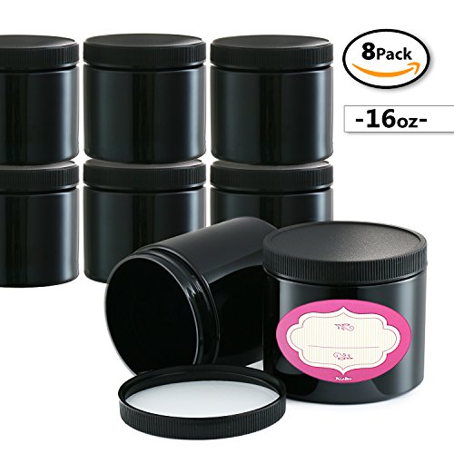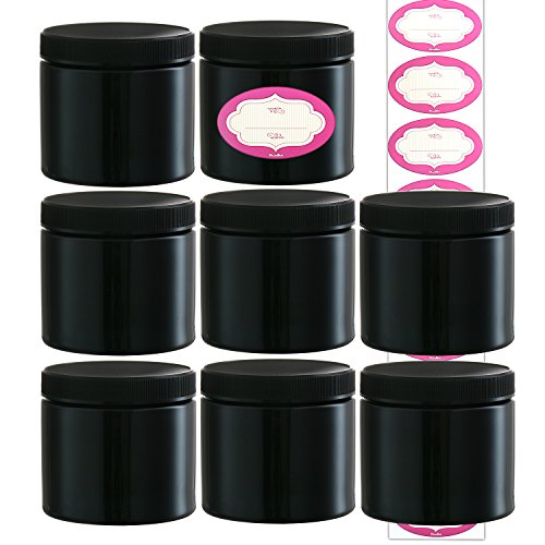 - 8-PACK 16 OZ EMPTY CONTAINERS, CAPS & LABELS: Neatly organize and display your beauty products and more in these durable luxury jars with the chic labels included. Airtight screw-on lids keep contents fresh for longer than most.