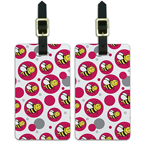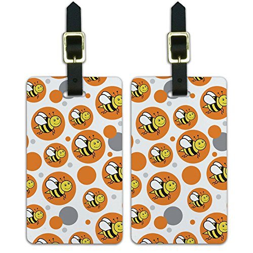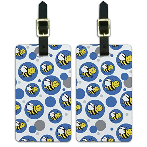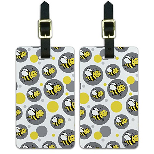 Luggage Suitcase Carry-On ID Tags Set of 2 - Happy Bumble Bee Buzz Insect Honey