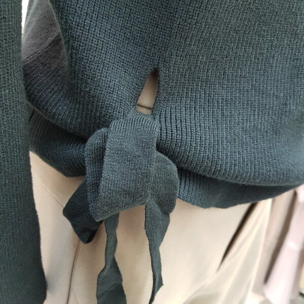 칼라풀한 색감, 루즈핏스탈의 니트에 리본끈이 밑단에 디자인되어 독특하면서 아주예쁜 니트티입니다.