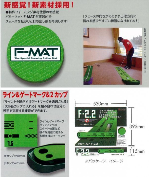 特殊フォーミングマット仕様で、スムーズな打ち出し感を再現しました。フェースの向きがそのまま出球方向に伝わる感じが練習に最適!「ラインに乗せる」「ゲートマークを通す」2つの意識づくりで驚くほどパットが得意になります。 |