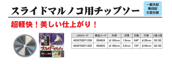 外径:190mm 刃厚:2.0mm 刃数:72P 穴径:20mm