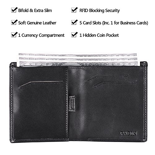 -. Binding : Apparel -. Brand : Pabin -. Department : mens -. Feature : ✔ SAFTY COMES FIRST-Tested RFID Blocking inner material will perfectly block those unwanted RFID scanners. / ✔ BIG CAPACITY BUT HOW SLIM IT CAN BE ?- Less than half inch thickness Measure 4"x 3.3"x 0.2" Slim thin body can be easily placed in front pocket/back pocket.Best choice for avoiding bulky looking wallets. / ✔ DESIGN CONCEPT- Made with soft and durable genuine leather ,Designed with 3 quick-access slots for daily cards, plus a pull-tab section for the rest,Best suited to 4-11 cards plus flat bills.And what's more, the small coin pockets will also be a plus for your easy-travel. / ✔ WHAT'S MORE? - Do you face the hassle of bussiness cards get dirty in the wallet? Now keep them in the hidden rear slot to separate your cards away from the rests and ensure they are always clean and crisp. / ✔ LIFE LONG WARRANTY+DELIVERED WITH A EXCLUSIVE GIFT BOX- Best gift for him while he travels all around the world. -. PackageQuantity : 1 -. ProductGroup : Apparel -. ProductTypeName : ACCESSORY -. Size : Slim -. Title : Slim Leather Wallets for Men Bifold RFID Blocking Thin Mens Wallet with Coin Pocket Pabin (Max. 11 Cards and Cash)