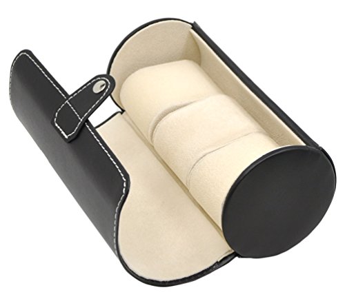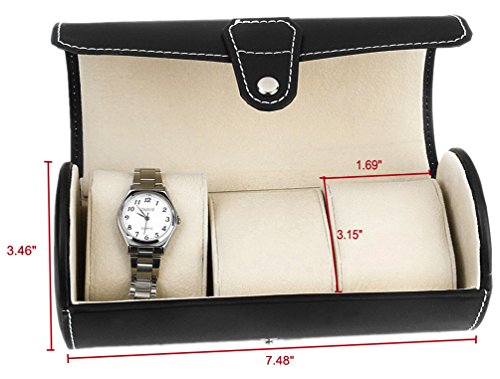 ADTL Leatherette Roll Traveler's Watch Storage Organizer for 3 Watch and / or Bracelets (Black)