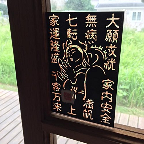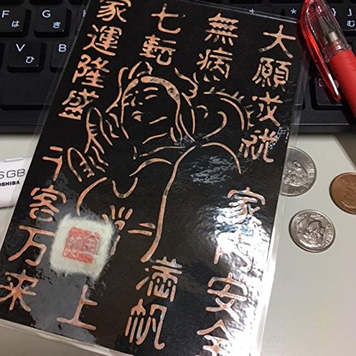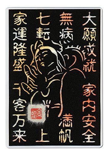 Cutout picture Japanese art collage KIRIE “Kanji characters that bring good fortune & White Snake Kannon” Made of Washi(Japanese paper) Apricot, 4” x 6”