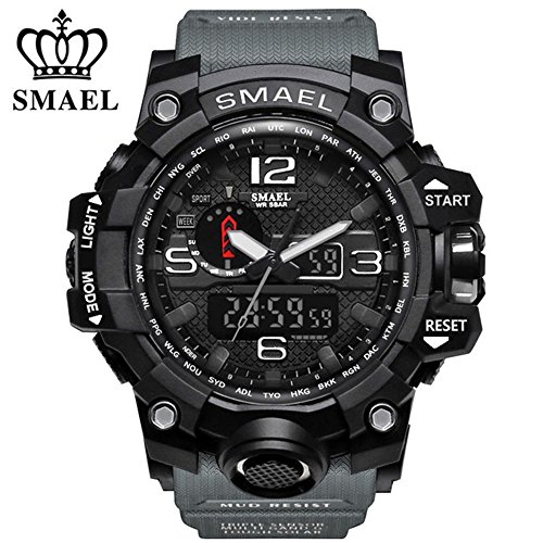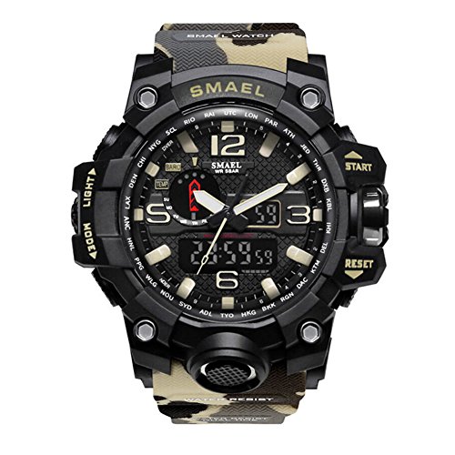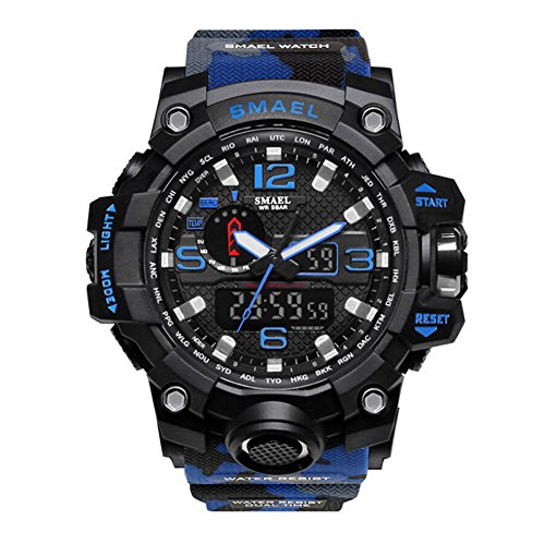 DUAL DIAL TWO TIMEZONE: analog and digital dual dial support two different timezone. Shock resistant, stop watch, military 12H/24H time, and LED back light functions make it perfect for all kind of sport and daily use