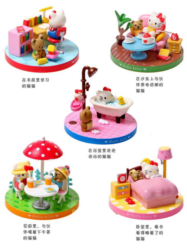 凯蒂猫KT的开心时间,全套5款场景摆件,带精致盒装,适合收藏!