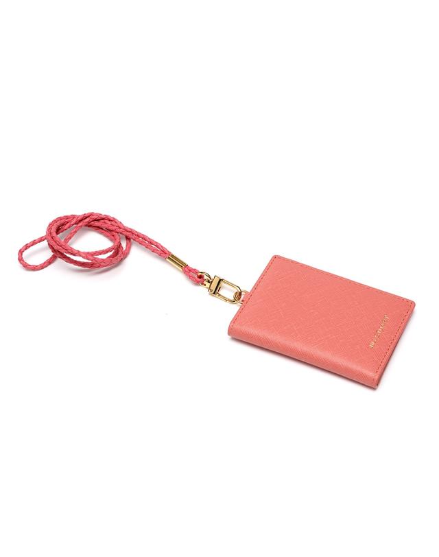 고급스러운 사피아노 소가죽 소재에 핑크 컬러 바탕과 JILLSTUART 로고로 포인트를 준 목걸이형 카드홀더 입니다.