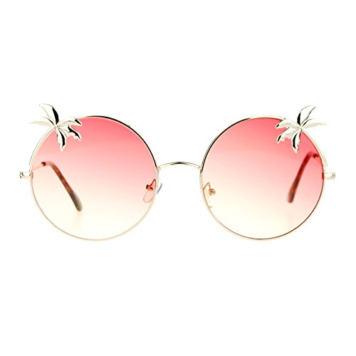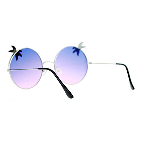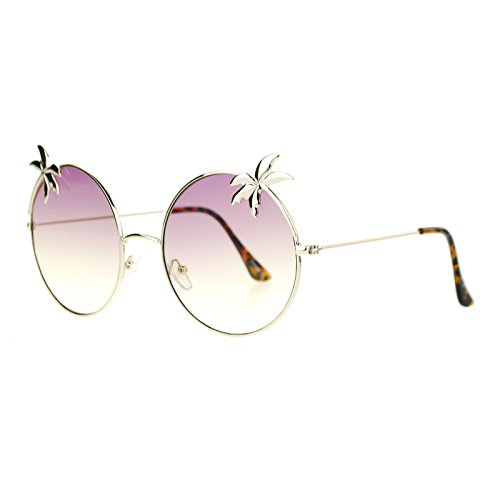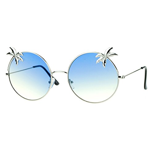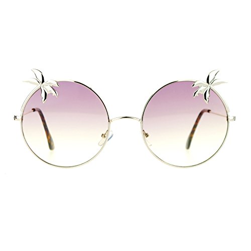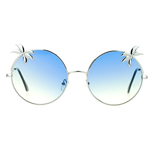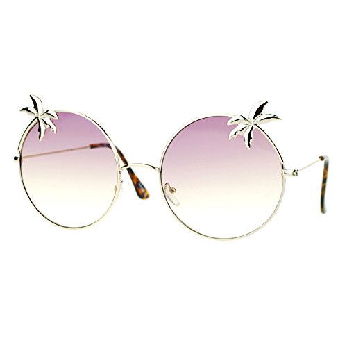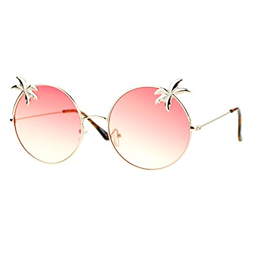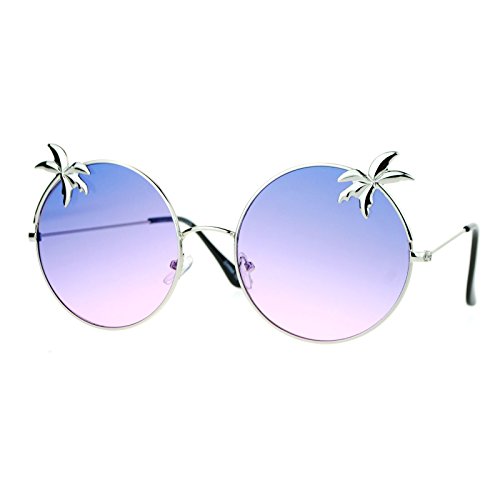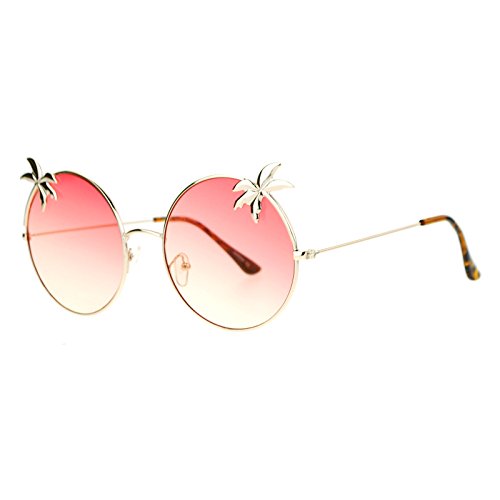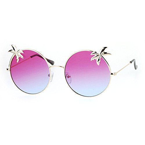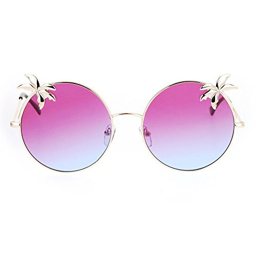 SA106 Retro Unique Palm Tree Trim Gradient Color Hippie Round Sunglasses