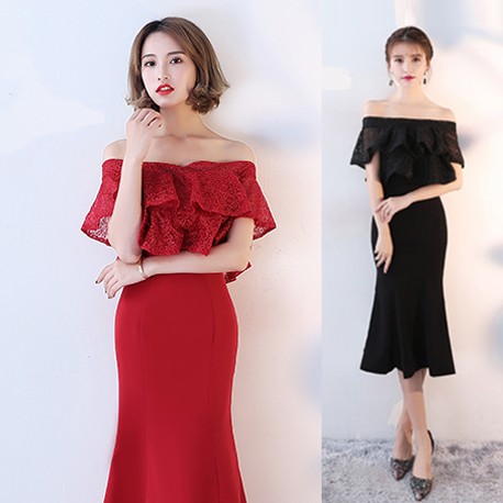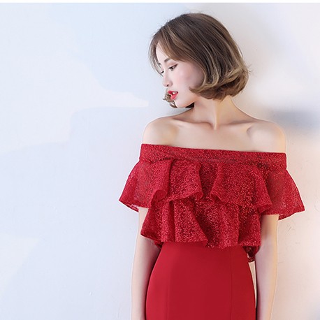 ボリュームを持たせ、肩部分が大胆に空いたオフショルダー