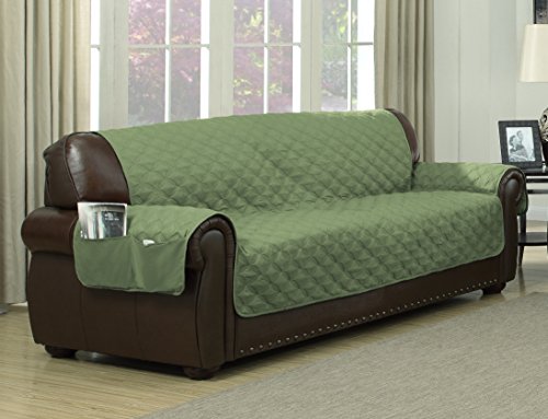 -. Title : Geneva Home Fashion Ashford Reversible Sofa Cover, Sage/Linen