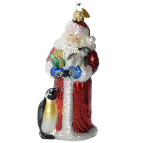 Old World Christmas Santa with Penguin Pals, 5 " Glass Ornament
