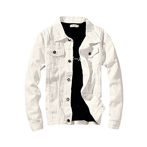 -. Feature : FABRIC:Cotton,Polyester / Single-breasted, lapel, slim,stand collar ,100% brand new and high quality. / Machine wash or hand wash,both is ok. / Don't need to use the Amazon's US sizing chart, please see the picture on the left size chart. / Full button casual trucker jacket,denim button-front jacket featuring button-flap chest pockets .