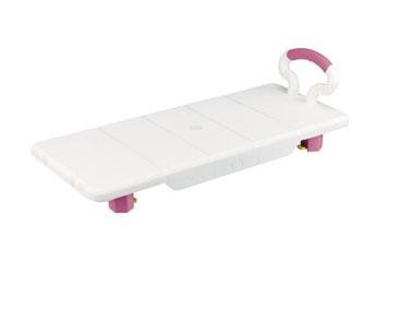 | グリップは滑りにくい素材でしっかり握れます。ストッパーレバーを採用しているので、浴槽に簡単に設置できます。ボード表面は細かな凹凸加工で、すべり止め効果を出しています。 |