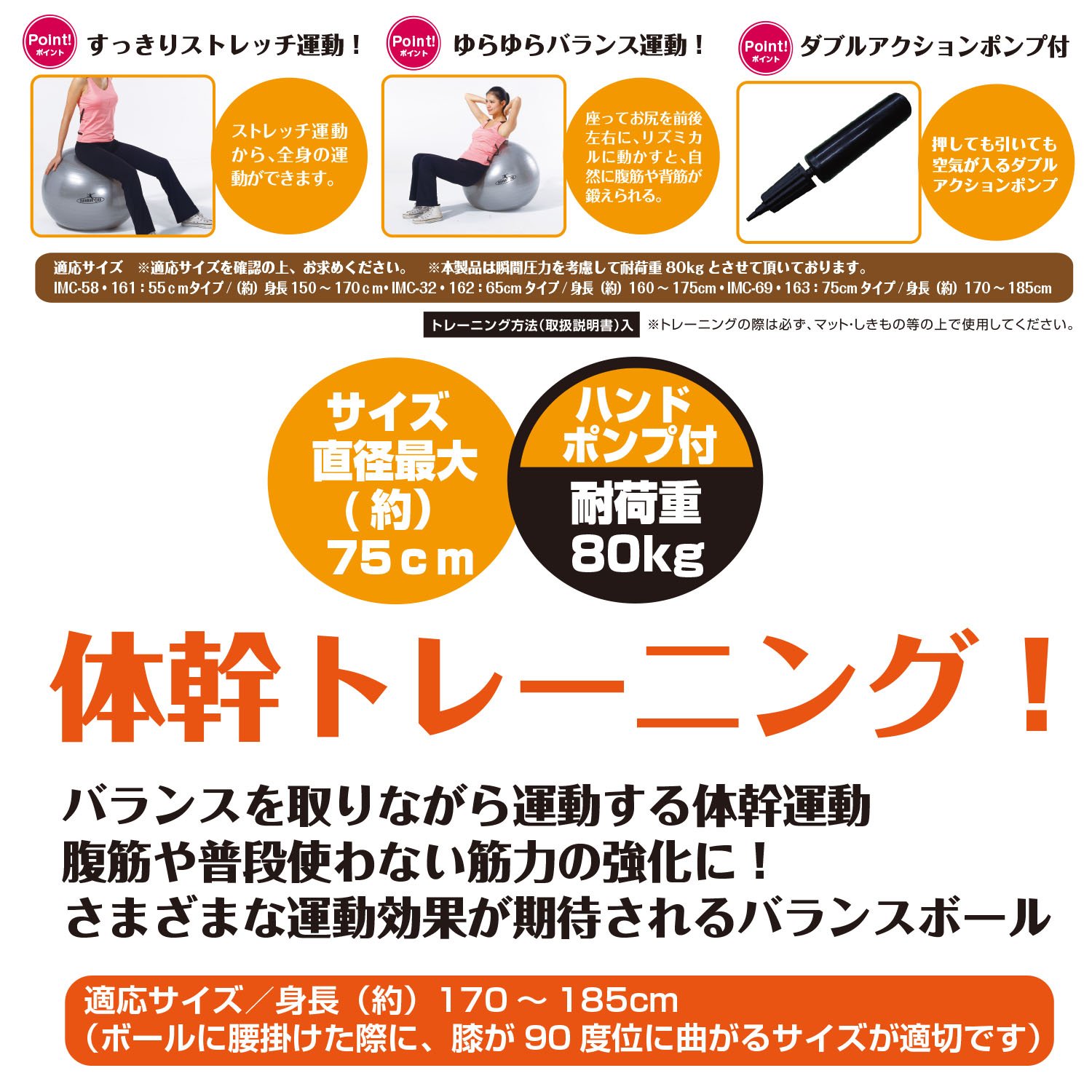 ● You can easily comprehensive muscular forces ranging from the arm, shoulder, abdomen, thighs to the whole legs, shape-up and rehabilitate etc. using the characteristics of the ball