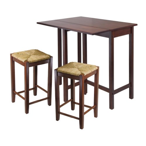 -. Title : Winsome Lynwood Drop Leaf Table with Rush Seat Stool, 3-Piece