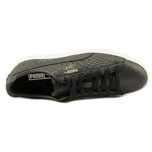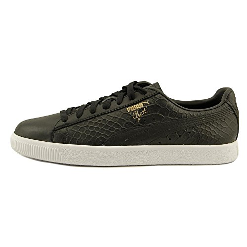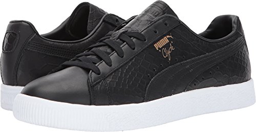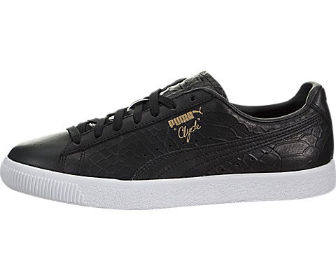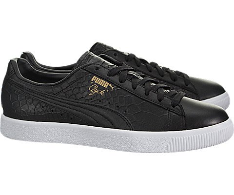 Product Description Originally released in 1973, the Puma Clyde was worn and named after basketball great Walt "Clyde" Frazier. They sport a timeless athletic design, leather upper, gold foil "Clyde" lettering on the side panels, and a rubber outsole. 0