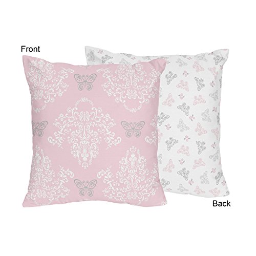 Sweet Jojo Designs Pink, Gray and White Damask Butterfly Girls Decorative Accent Throw Pillow for Shabby Chic Alexa Bedding Set