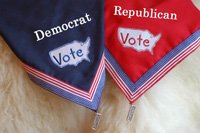 -. Binding : Misc. -. Brand : Vote Democrat Election Bandana - Large -. Feature : Vote Democrat! Spread the word! / United We Stand Charm / Flag Trim / Made in the USA -. Label : High Grade Pet Products -. Manufacturer : High Grade Pet Products -. PackageQuantity : 1 -. ProductGroup : Pet Products -. ProductTypeName : PET_SUPPLIES -. Publisher : High Grade Pet Products -. Size : medium -. Studio : High Grade Pet Products -. Title : Vote Democrat Election Bandana - Large