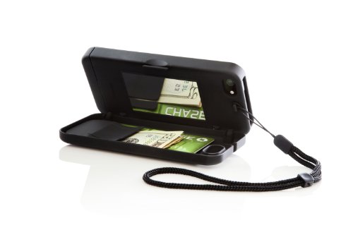 eyn stands for everything you need-a smartphone case plus built-in storage all rolled into one, thanks to its hinged back. The Black iPhone 5/5s eyn Case with Kickstand is a genius little phone case with hidden storage that holds your daily essentials all in one place. Things like your phone, cash, cards, ID, keys, tickets, lip balm, mints and other must-haves-all in one magic little compartment. Don't overstuff though! It's designed to hold 3 bank cards and cash. Just grab it and go-out to dinner, for a night on the town, off to yoga, down to the beach, wherever. ;;The case clicks shut so you know your essentials are safely in place. The form-fit feature protects the screen, while high quality polycarbonate protects the phone and valuables. A rubber coating provides a sleek finish and a secure grip. The kickstand feature makes watching videos and Face Time chatting easy, or place it on your dashboard for GPS navigation. There’s even a mirror for quick touch-ups. ;;eyn. Created for people on the go.