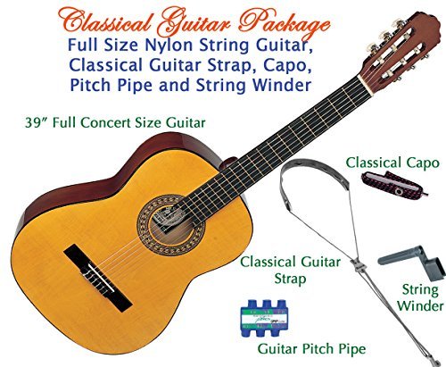 Product DescriptionSanta Rosa KCL330PK Classical Full Concert Size Nylon String Guitar Package with Strap, Pitch Pipe and String Winder0