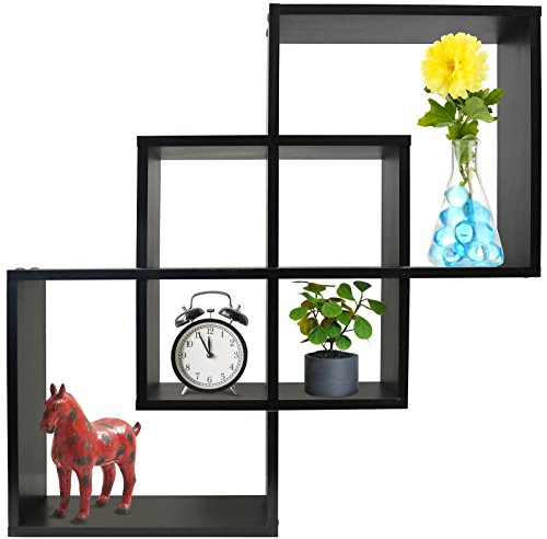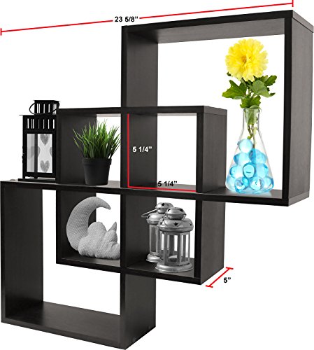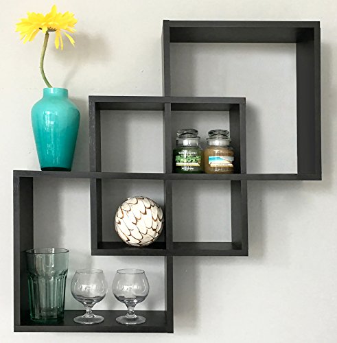 Greenco Quadrate Felix 3 Cubes Intersecting Decorative Wall Mounted Floating Shelves- Espresso Finish