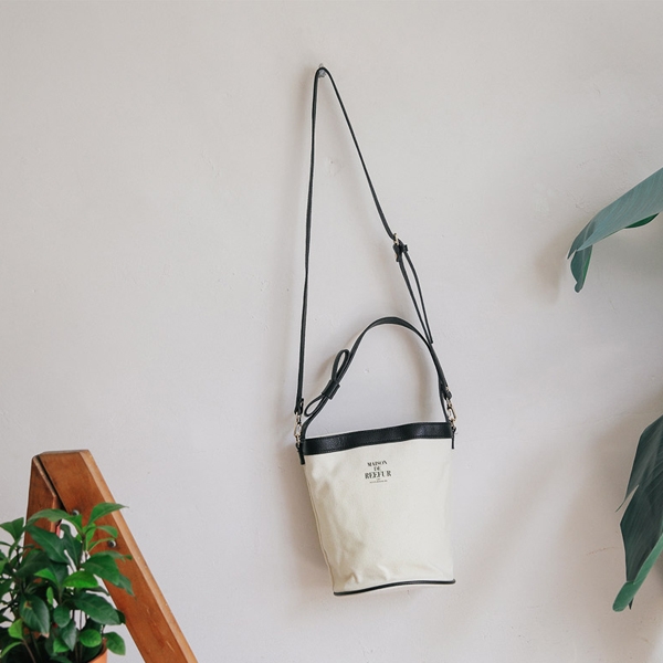 데일리 원통형 버킷백 내츄럴한 코튼과 가죽 배색이 돋보이는 버킷백이에요. 둥그런 원통형으로, 수납품이 적으면 납작한 스타일로 슬림하게 연출되며, 토트백으로 들 수 있는 한쪽에 리본 매듭이 접힌 끈이 있어서, 귀엽게 드실 수 있습니다. 크로스백으로도 연출할 수 있는 가방끈은 탈부착이 가능해서 더욱 실용적이구요! 가방끈 길이 조절 가능해요! 앞부분엔 프렌치한 느낌의 레터링이 있어서 분위기를 더해주는 가방이랍니다! 두루 매치되어 데일리로 딱! 가방크기도 A4 보다 조금 작은 크기감으로 데일리 소지품들을 넣어다니기 딱이에요! # 상세사이즈 / 측정방법에 따라 살짝 오차가 있을 수 있어요 / 가로(윗면)길이 : 24cm 세로 길이 : 23.5cm 바닥폭 : 17.5cm 가방끈길이(최대) 109.5cm 소재 : 코튼, 합성피혁 제조국: KOREA