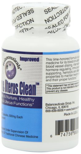 -. Binding : Health and Beauty -. Brand : Balanceuticals -. EAN : 0674756980475 -. Feature : Pack of 60 counts / Made under supervision by China Academy of Traditional Chinese Medicine / Made of extracts from cinnamon twig, holen (poria), peony, moutan bark and more / Blood circulation promoting, blood vessel dilating, stasis dispersing, internal secretion and hormone regulating / With properties to maintain healthy ovary and uterus and their proper functions -. Label : Balanceuticals -. LegalDisclaimer : Unless otherwise noted, this item has not been evaluated by the United States Food and Drug Administration. It is not approved to diagnose, treat, cure or prevent disease. -. Manufacturer : Balanceuticals -. Model : 674756980475 -. MPN : 674756980475 -. NumberOfItems : 1 -. PackageQuantity : 1 -. PartNumber : 674756980475 -. ProductGroup : Health and Beauty -. ProductTypeName : HEALTH_PERSONAL_CARE -. Publisher : Balanceuticals -. ReleaseDate : 2006-10-31 -. Size : 60 -. Studio : Balanceuticals -. Title : Balanceuticals Ovary & Uterus Clean, 500 mg Dietary Supplement Capsules, 60-Count Bottle -. UPC : 674756980475