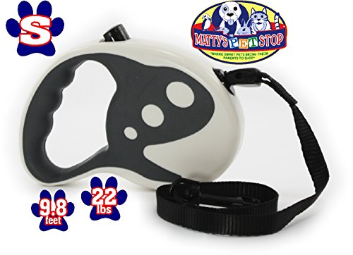Studio : Homeware Publisher : Homeware Binding : Misc. Product Description Matty's Pet Stop Retractable Dog Leash, 9.8 Ft for Small Dogs up to 22 Pounds, Tangle Free, One Button Break Lock - White Grey, is AWESOME! Take the control back on your daily walks with the Matty's Pet Stop Retractable Dog Leash. Putting the power comfortably into your hands, the leash features a break and lock button that keeps the leash tight and your dog close, enabling instant retraction when needed. The durable leash extends up to 9.8 feet, allowing your dog have some space, whether you're going on a long hike or just a stroll around the neighborhood. Putting the fun back into dog walking, just be warned that he'll jump for joy every time you pick it up! 0