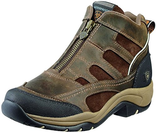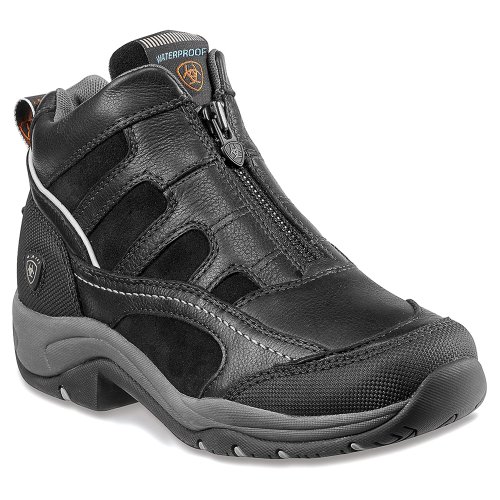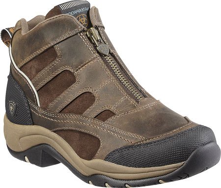 Get out and about with confidence in the Ariat Terrain Zip H2O boot. Equipped with a top zipper for quick and easy on/off, this women's outdoor ankle boot boasts an oiled, breathable full grain leather and suede upper and Waterproof Pro� construction to keep you dry when the weather isn't. A padded tongue and collar, an EVA midsole and Ariat's signature ATS� (Advanced Torque Stability) technology surround your foot in comfort and support, while the moisture-wicking lining helps regulate temperature and maintain a healthy interior. The Ariat Terrain Zip H2O ankle boot is finished with a Duratread� outsole for dependable traction and performance.Feature