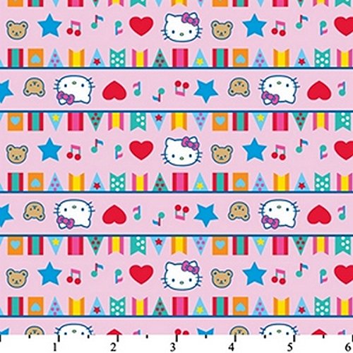 Hello Kitty Big Top Flags Pink HK-26 100% Cotton Fabric Quilt Prints 44/45" Wide / Sold By The Yard