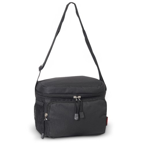 Features: - An insulated cooler bag perfect for lunch or snacks on the road. - Interior vinyl lining. - Front zippered pocket for utensils and napkins. - Dual side mesh pockets provide additional storage. - Adjustable strap. Materials: 600D Polyester Di