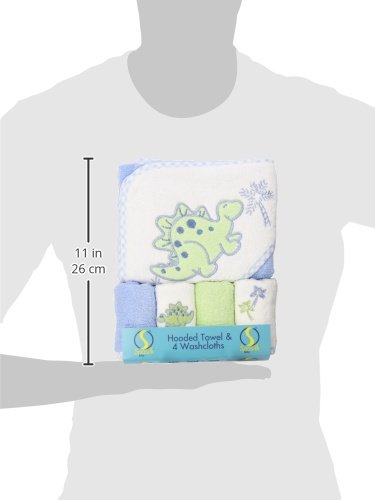 Spasilk 100% Cotton Hooded Terry Bath Towel with 4 Washcloths-Dinosaur Blue/Green