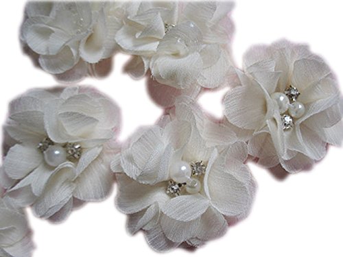 YYCRAFT Pack Of 20 Pieces Chiffon 2" Flower Rhinestone for craft projects-Ivory