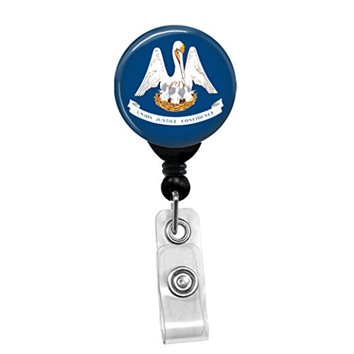 Louisiana State Flag Retractable Badge Reel - ID Card Name Tag Custom Badge Holder (Black Badge Reel with Spring Pinch Clip)