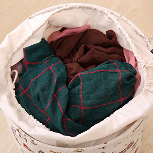 SYROVIA™ Collapsible Laundry Basket Hamper Waterproof Coating Cylindrical Storage Basket with Drawstring Closure and Handles For Bedroom Nursery Dorm Closet