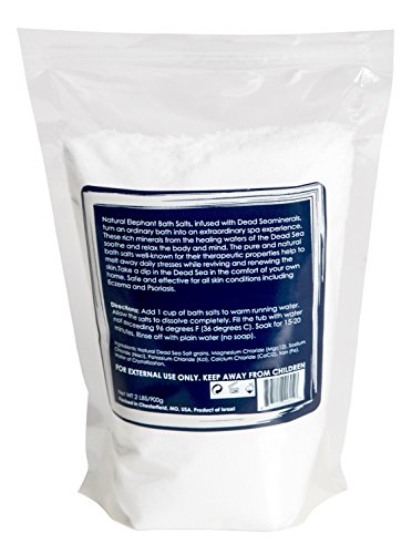 Natural Elephant bath salts, infused with dead sea minerals, turn an ordinary bath into an extraordinary spa experience. These rich minerals from the healing waters of the dead sea soothe and relax the body and mind. The pure and natural bath salts well-known for their therapeu!c properness help to melt away daily stresses while reviving and renewing the skin. Take a dip in the dead sea in the comfort of your own home. Available in 1 pound, 2 pound, 5 pound and 10 pound sealed bags.Feature