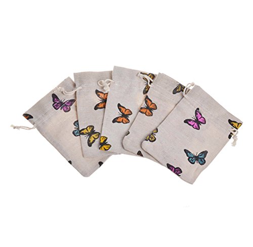 Bueer Muslin Favor Bag with Drawstring For Wedding Bridal Shower Bachelorette Party Avoid Hangover Kit Gift Favor Bag(25pc) (Butterfly)