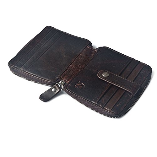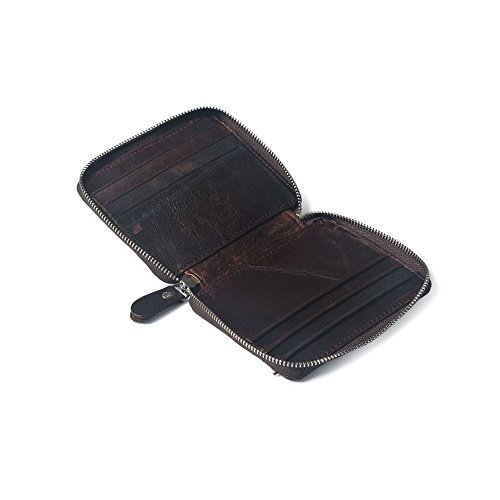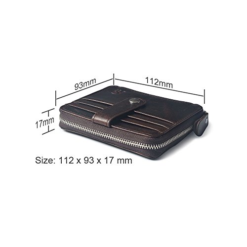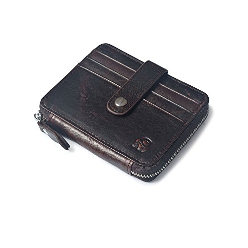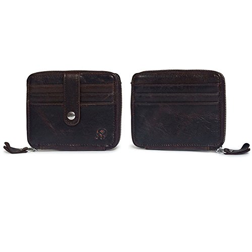 Product Description Feature: Color : black,brown,coffee,wine red Style: can hold cash,card,some bills and coins Material: 100% cow Leather Dimensions: 4.37x3.63x0.66 inches Excellent everyday wallet 8 credit card slots, 4 compartments and 1 main zipper pocket for easy access Put some cards/ID/driver license or bills/note/coins just in case you go walk the dog, shopping. Made with the Finest Full Grain genuine leather, the first class craftsmanship, classy, softer, last many years. Production information: Minimalist very Slim Design, with good genuine leather and stitching, the card slots are appropriately sized. It is thin, not bulky, perfect for people who are looking for slim and small wallet to hold money and cards. Made with the Finest Full Vintage genuine leather. Vintage look Premium Leather for a noticeable luxurious feel and unmatched durability. Longer time we use, nicer it becomes.