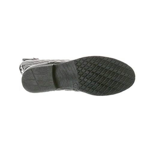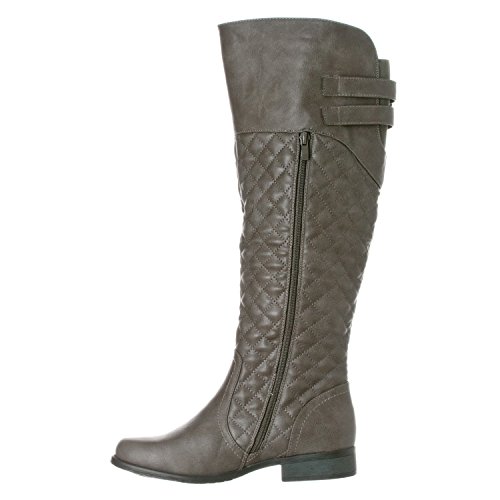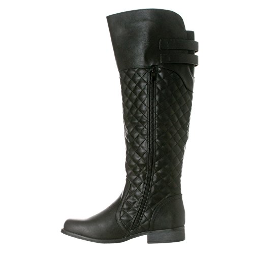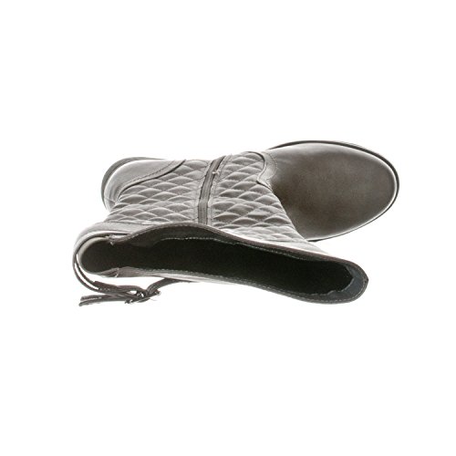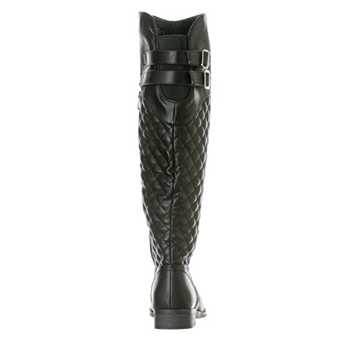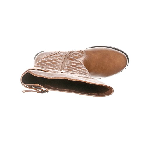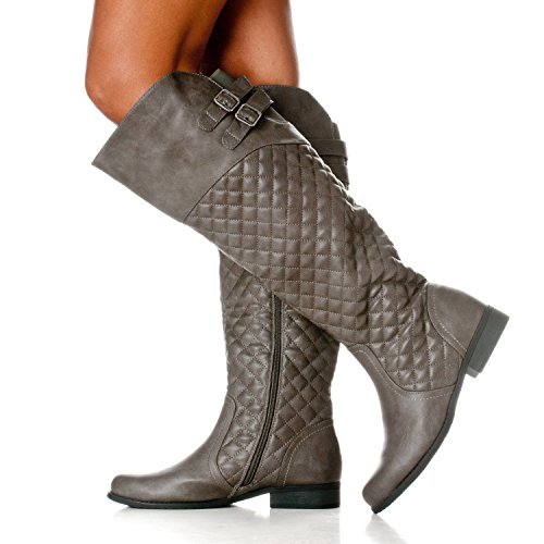 Binding : Apparel Product Description Riverberry's Lily is a stylish and comfortable knee-high riding, motorcycle boot that features a quilted lower shaft with a smooth top shaft and foot. With a round toe shape and a clean, decoration free body, the Lily strikes the perfect balance between clean and stylish. A couple non-functioning shaft top strap accents helps to maintain an overall casual to semi-casual feel. Functionally, the Lily uses a full length, discreet zipper and a slightly padded insole to ensure a secure, comfortable fit. The boot shaft has a height measurement of approximately 17" and a shaft opening circumference of about 17". The back heel measures about 1". Imported. 0
