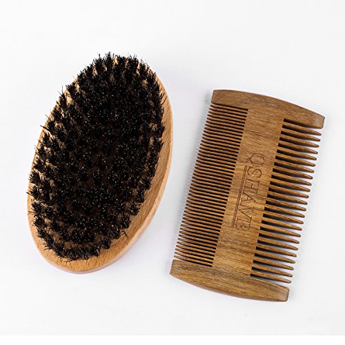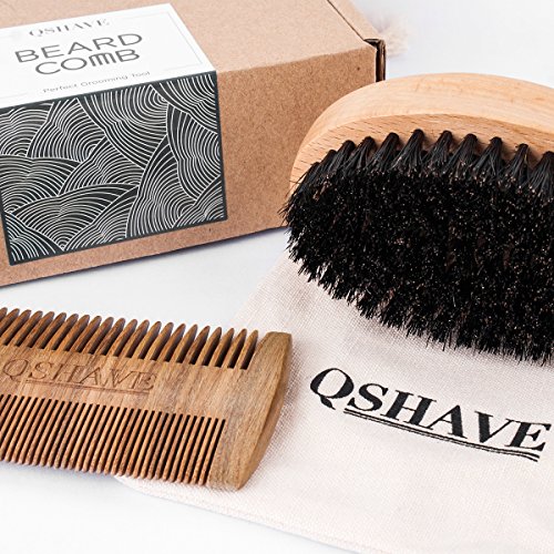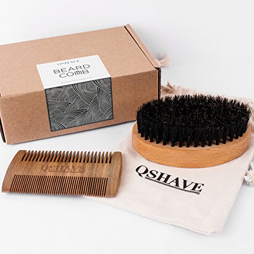 QSHAVE Beard Brush & Moustache Comb Set - Made of Premium Boar Hair and Beech